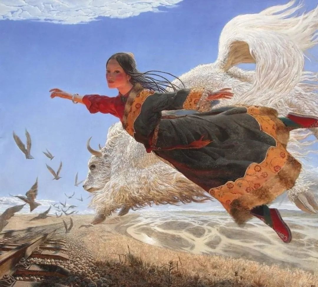 Известен тибетскими пейзажами с летающими людьми, яками и овцами. Родом из провинции Шаньдун, имеет высшее образование. В настоящее время трудится дизайнером в большой корпорации, которая занимается строительством и обслуживанием железных дорог. В начале 2000-х компания производила ремонт на участке железной дороги «Цинхай-Тибет». Это место находится на Тибетском плато. На художника произвели большое впечатление потрясающие пейзажи и сами тибетцы. «...Я немало времени провёл, валяясь в траве, так как мучился от горной болезни. Однажды, стал свидетелем изумительного зрелища: две местные девушки мчались со стадом яков. Они были подобны богиням, когда те еще были земными существами. Сказочные отношения человека и яка, которых называют «кораблем плато», развернулись прямо у меня перед глазами. В этой серии я хочу отразить своё уникальное психологическое путешествие».