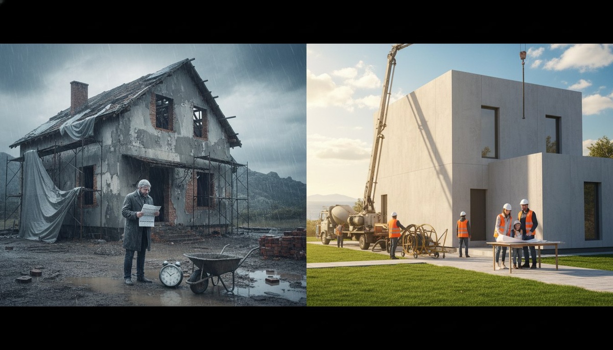 ? В Крыму почти каждый второй заказчик классики обжёгся — стройка превращается в долгострой. Почему так происходит: — бетон, штукатурка и кладка зависят от температуры, дождей и влажности; — бригады «рассыпаются» с первыми холодами; — задержки ведут к росту цен и аренде жилья, смета легко растёт в 1,5×. Мы в Box House видим корень в технологии: «мокрые» процессы проигрывают крымскому климату. Решение — монолит SCIP: меньше зависимости от погоды, предсказуемые сроки и бюджет 🏗️🌦️🏡 Готовы уйти от риска классики? Пишите в комментариях или в личку.