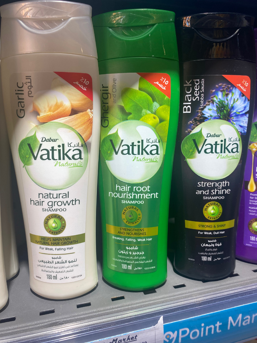 В первую очередь в Египте вы, конечно, увидите шампуни Vatika. Их огромное количество — с самыми разными ингредиентами.