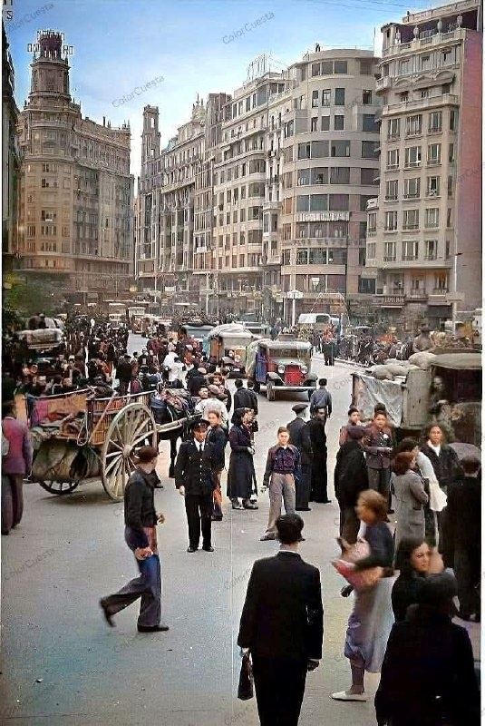Площадь Эмилио Кастелара. На фото - Валенсия в годы войны: город не в руинах, но уже под тревогой и налётами. Совсем скоро она станет фактической столицей Республики. Пока здесь нет фронта. Толпа на площади: мужчины в пальто и шляпах, женщины с сумками, дети, которые бегут между взрослыми, будто это обычный день. Люди не прячутся, не позируют. Они продолжают жить, потому что другого выбора нет. Посмотри на лица. В них нет героизма. Есть усталость, внимание, ожидание. Каждый здесь думает о своём: о хлебе, о семье, о том, дойдёт ли война до его улицы. Сегодня мы знаем, чем всё закончится. Они - нет. 👍 Если было полезно — ставь лайк и делись с друзьями. #Валенсия #Valencia1936 #ИсторияИспании #ГражданскаяВойна #ЛюдиИВремя #Память #СтарыеФото