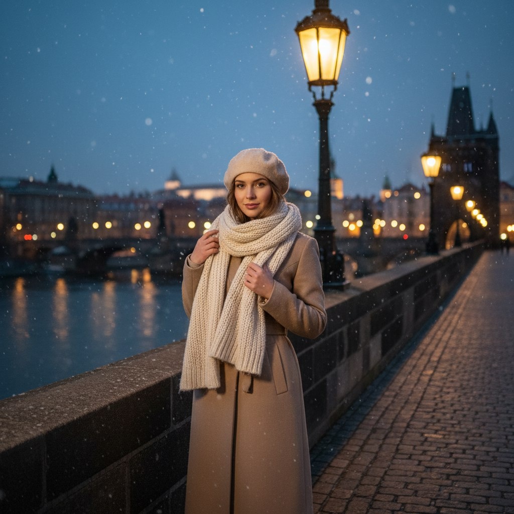 🗝 Ключ №1: Зимняя элегантность на мосту (Cinematic Portrait