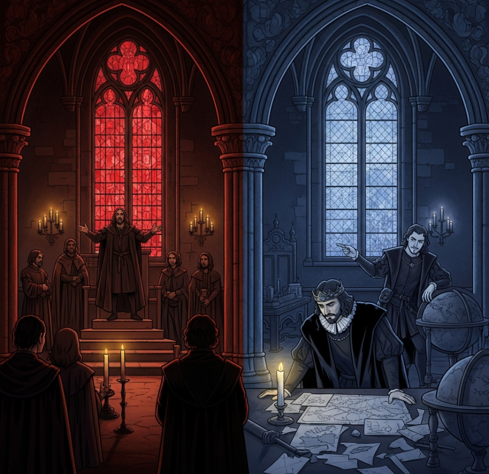 — В зеркало, государь. Он фанатик? Станьте больше, чем фанатик. Он собирает «Священную Лигу»? Объявите себя её главным покровителем. Возьмите её под свою руку. Скажите: «Дорогой кузен, твоё рвение мне дорого. Доверь мне своих людей, свои списки. Я поведу их к победе истинной веры!». Вы станете для него солнцем, вокруг которого он затеял кружить свою планету. И либо он обожжётся, приблизившись, либо навсегда останется в тени вашей «благочестивой» инициативы.
