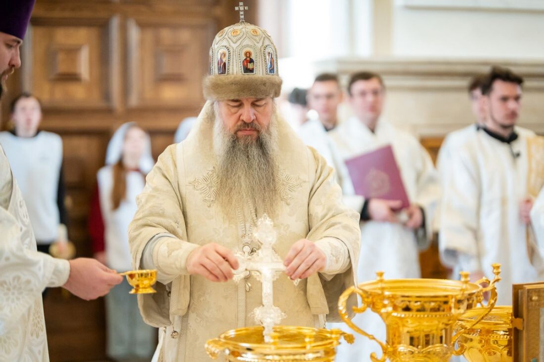 Сегодня, 18 января, митрополит Пензенский и Нижнеломовский Серафим провел литургию святителя Иоанна Златоуста в Спасском кафедральном соборе Пензы. Богослужебные песнопения исполнил хор Спасского кафедрального собора под руководством регента Ольги Горшеневой. Перед причастием проповедь произнес священник Евгений Климчев. После литургии состоялась великая вечерня. В конце священнослужители вышли в центр храма под пение тропарей «Глас Господень на водах», где глава Пензенской митрополии совершил великое освящение воды. Затем митрополит Серафим и духовенство, стоя перед зажженной свечой в центре храма, пропели тропарь и кондак Крещению Господню. В конце богослужения Высокопреосвященный митрополит Серафим поздравил верующих с сочельником и наступающим праздником, сообщает Пензенская епархия. Крещенская вода, или великая агиасма, освящается в память о крещении Иисуса Христа в реке Иордан. Чин великого освящения проводится дважды в год: в Крещенский сочельник и в сам праздник Крещения Господ