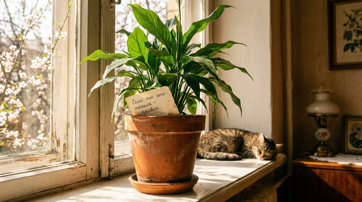Дома я поставила горшок на подоконник и два дня смотрела на него, как на задачку, которую не понимаю. Цветок не двигался. Не требовал внимания. Не спрашивал, как прошёл день. Просто стоял – зелёный, молчаливый, терпеливый. Мне понравилось.