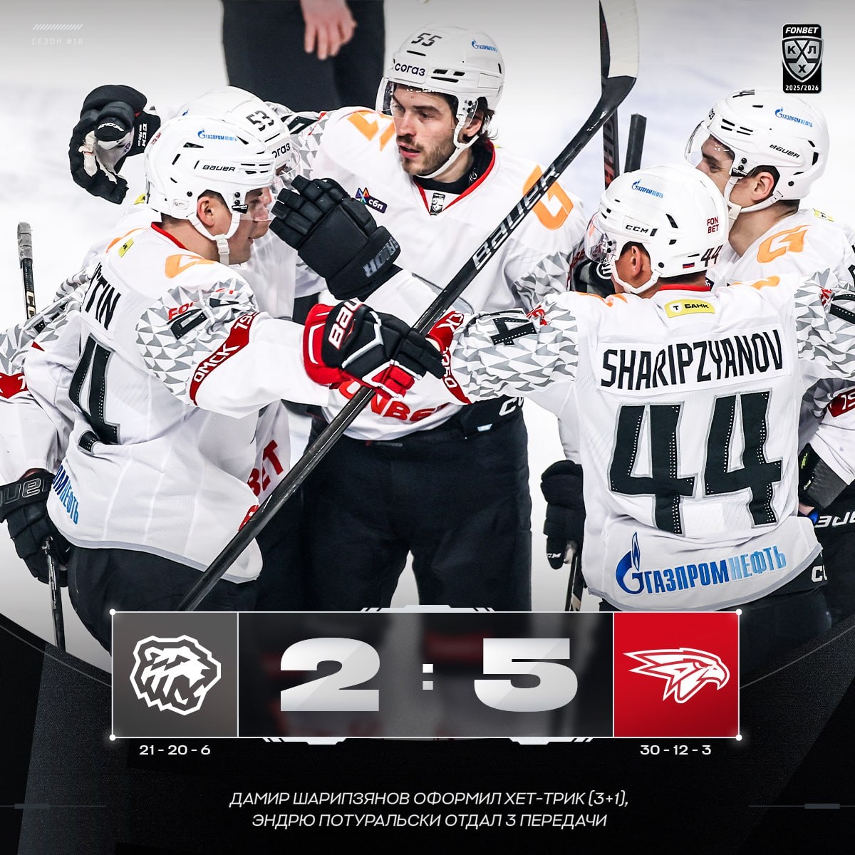 🦅 Хет-трик Дамира Шарипзянова принес «Авангарду» третью подряд победу над «Трактором»!