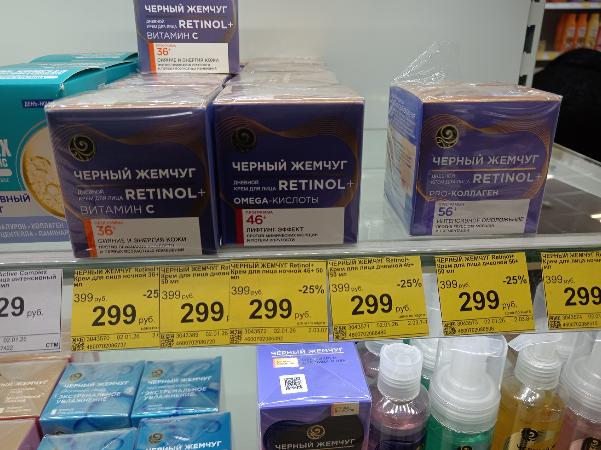 Добрый вечер всем! Сегодня заходила в магазин "Улыбка радуги" и хочу вас познакомить с товарами по жёлтым ценникам. Дневной крем "Чёрный жемчуг" 36 + с витамином С, 46 + лифтинг - эффект, 56 + про - коллаген. Цена: 299 рублей. Крем для век "Чёрный жемчуг" 60+ экстра - восстановление, 20 мл. Цена: 309 рублей. Сыворотка - бустер "Чёрный жемчуг" увлажняет и придаёт мягкость, 30 мл. Цена: 379 рублей. Мульти - крем "Чёрный жемчуг" для всех возрастов, 46 мл. Цена: 273 рубля. Средство для снятия макияжа "Чёрный жемчуг", 170 мл. Цена: 319 рублей. Пенка - мусс для умывания "Чёрный жемчуг", 150 мл. Цена: 255 рублей. Гидрофильное Био - масло, средство для умывания. Цена: 279 рублей. Пенка - мусс для умывания "Чёрный жемчуг", 150 мл. Цена: 255 рублей. Тоник для лица "Чёрный жемчуг" для всех типов кожи, 200 мл. Цена: 299 рублей. Мультибальзам "Чёрный жемчуг" для лица и тела, 50 мл. Цена: 249 рублей. Освежающий гель для умывания, 120 мл. Цена: 249 рублей. Крем - гель для умывания для сухой и чувс