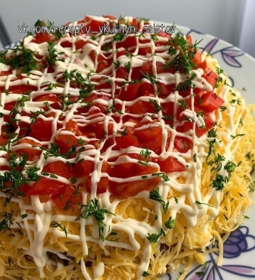 Салатик выкладывать слоями, каждый промазывать майонезом