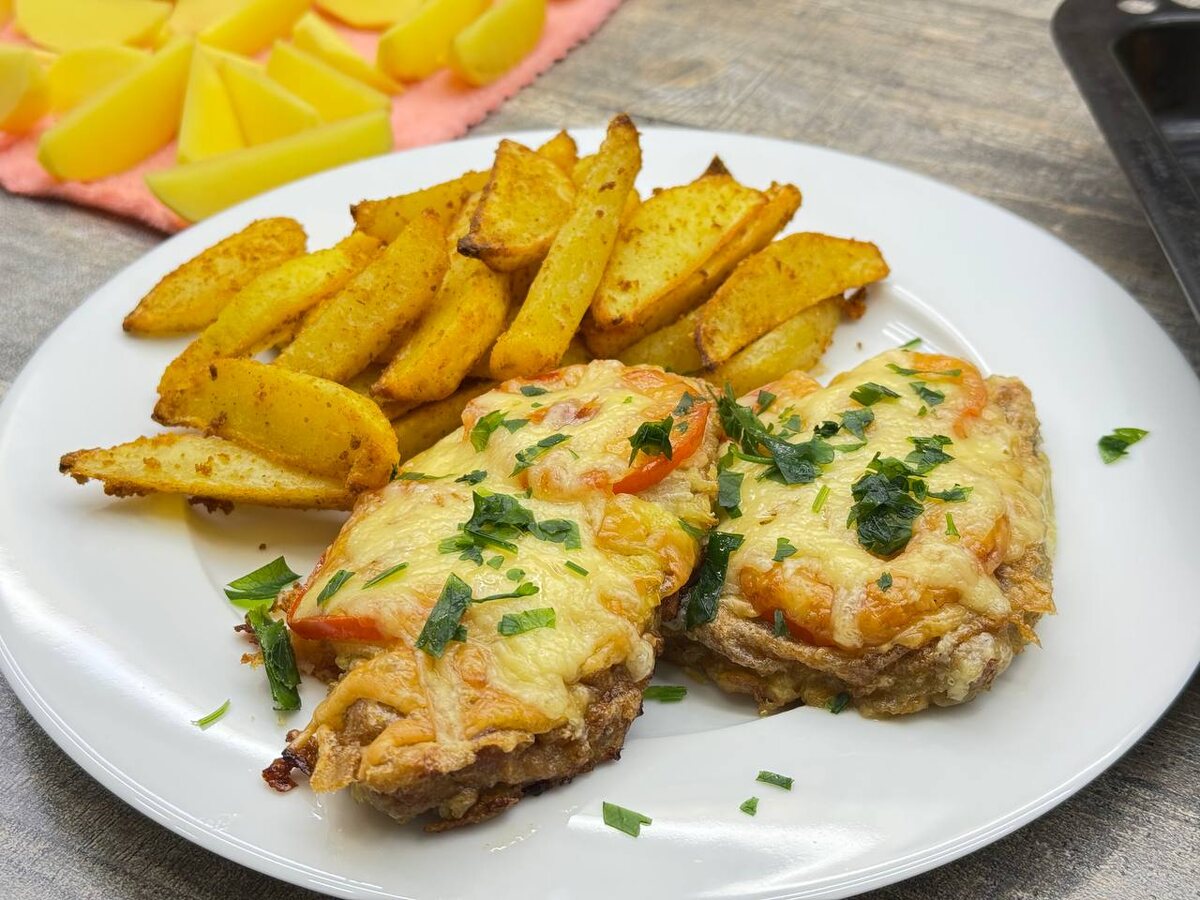 Я люблю простые, понятные блюда, которые выглядят празднично, а готовятся без лишней суеты. Этот рецепт как раз из таких. Сочные свиные отбивные под сырной шапкой и хрустящий картофель — классика домашней кухни, которую всегда встречают с восторгом. Такое блюдо отлично подойдёт и для обычного семейного ужина, и для выходного обеда, когда хочется порадовать близких чем‑то сытным и ароматным, но без сложных техник. Для свиных отбивных: Для картофеля в аэрогриле: Сначала я занимаюсь мясом. Свиную шейку нарезаю пластами толщиной примерно 1 см. Каждый кусок аккуратно отбиваю через плёнку, чтобы мясо стало мягче, но не потеряло форму. Затем солю, перчу и добавляю любимые специи для мяса. Даю отбивным полежать 10–15 минут, чтобы они напитались вкусом. Дальше готовлю кляр. В одну тарелку насыпаю муку, в другую разбиваю яйца и слегка взбиваю их вилкой. Каждую отбивную сначала обваливаю в муке, затем окунаю в яйцо. На сковороде разогреваю растительное масло и обжариваю отбивные на сильном огне