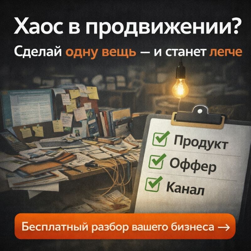 Первые деньги приходят не от “идеальной системы”, а от 1–2 каналов, которые подхватывают ваш спрос прямо сейчас. Сделай так (3 шага): Мини-чек-лист:
