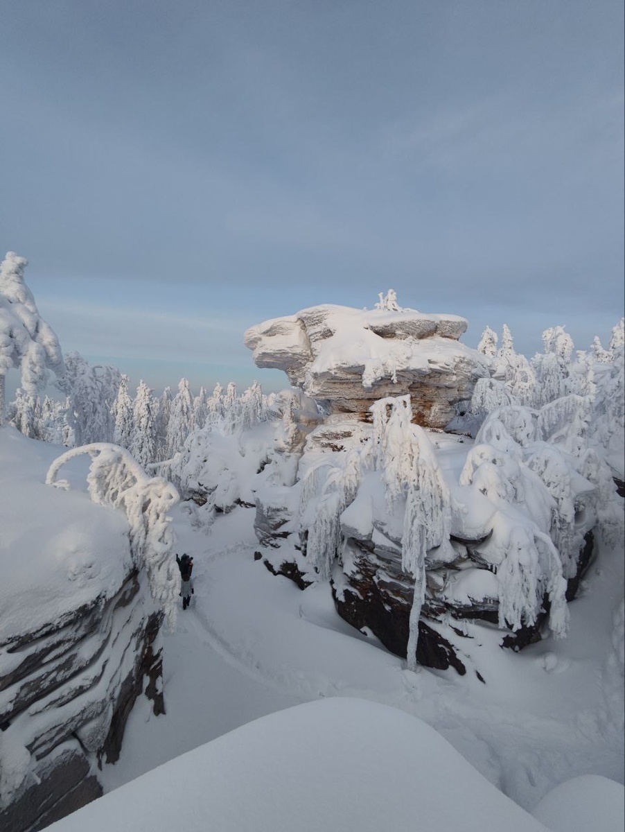 🗿 Каменный Город зимой, после снегопадов, становится белым: скалы, тропы и особенно деревья покрываются такими слоями снега, что ветви