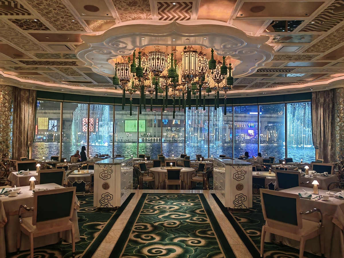 Ресторан в Макао в отеле Wynn Palace - Lakeview Palace. Впечатляющий вид на фонтаны! Меню и обслуживание - не фонтан, но можно простить ради такого места. Бронируйте экскурсии со мной в Китае, Макао и Гонконге. Юрлов Александр +85268553629 Ватсап Телеграм www.iurlov.su