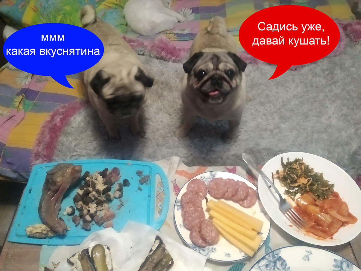 И вот наступал Новый 2026 Год и я решил провести его на Даче, но так как развелся накануне, то решил взять с собой сразу 2 мопса: Арчи и Маю, а чтобы попугать мышек и кошечку Марусю. Приехали 30 декабря, Арчи и Марусе Дача уже знакома, а вот для Маи это была первая поездка, поэтому на новом месте она чувствовала себя беспокойно, это и понятно, еще в мае она была в другой семье, поэтому везде бегала за мной. Чтобы не готовить заехали забрали заказ суши. 31 декабря мы собрались по магазинам, Марусю оставили за главную. Закупившись продуктами на 10 дней мы вернулись. Разгрузившись, первым делом подтопил печку, так как все готовится на ней и начал готовить праздничный ужин для хвостиков: рубец, бычьи семеняки и ушные раковины. Далее чуть убрался, себе хватило сил приготовить только бутерброды со шпротами. После 00:00 приступили к празднованию, посмотрели фильм и легли спать, уж очень все устали. Почти все праздничные дни мы кушали, лежали, смотрели фильмы, играли в приставку и спали. Отсып