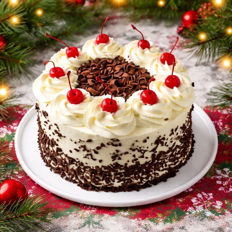 13. Верх украсить кремом и коктейльной вишней.