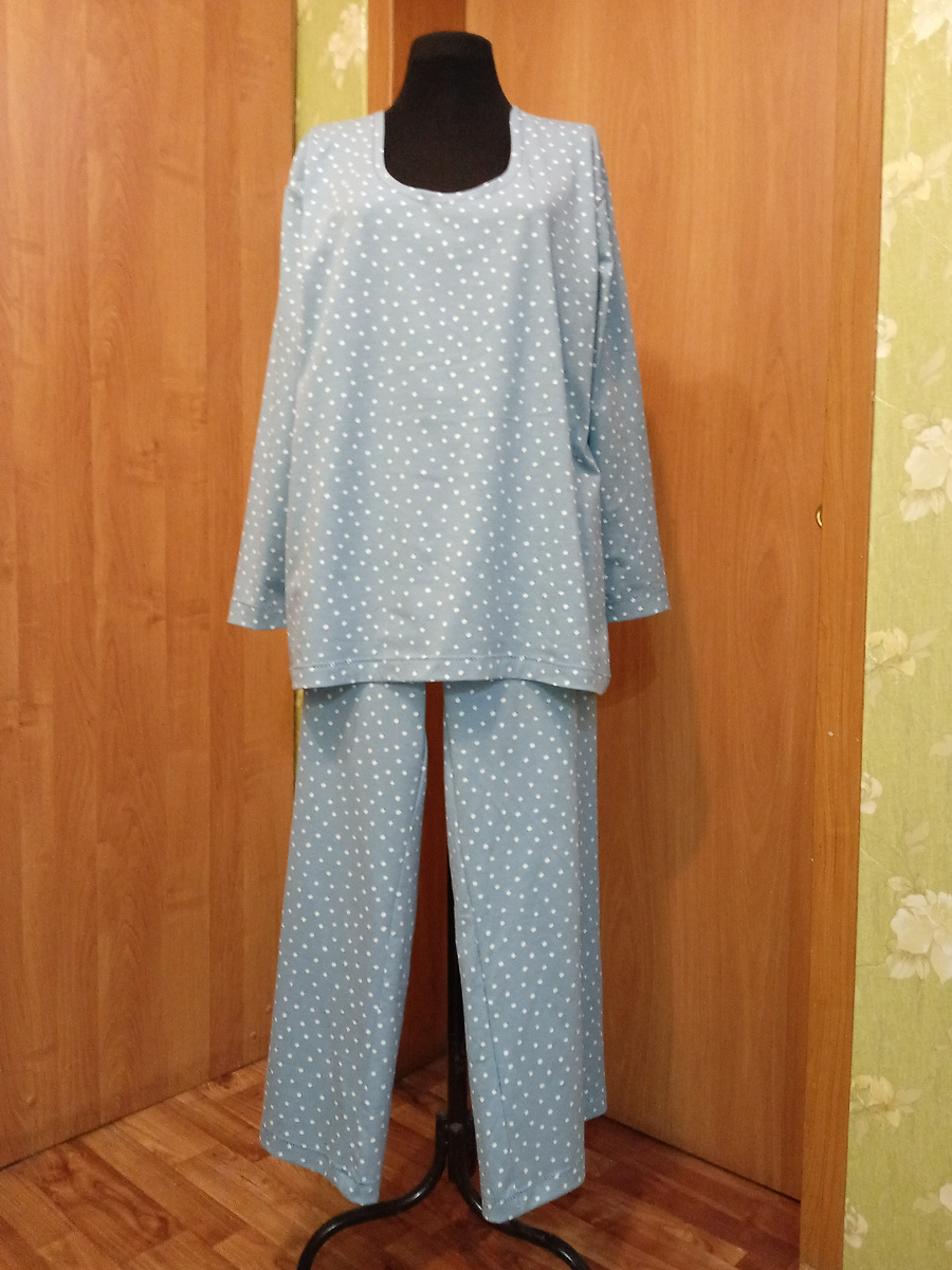 Продолжаю обновлять свою домашнюю одежду. Сегодня сшила домашний костюм из кулирки в горошек. Брюки широкие, на резинке. На манекене не видно, но смотрятся как длинная юбка. Весь костюм шила на обычной ножной Чайке, разными зигзагами. Последнее время полюбила свободные вещи. И сейчас вроде бы оверсайз в моде. Этот костюм смотрится почти пижамой, но если надеть сверху черный или темно-синий жилет, то вполне можно и до магазина добежать. Короче, с обновкой меня. Как шить подобный костюм и другие вещи, можно посмотреть в подборке "Как я шью одежду себе и близким". Больше полезного смотрите в других тематических подборках на моем канале "Клуб домохозяек на .дзене". Добро пожаловать.
