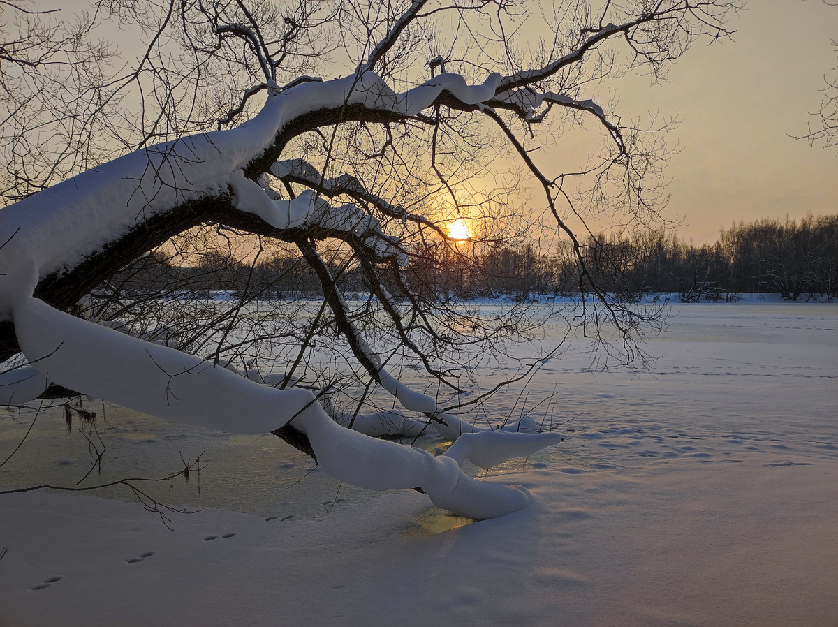 Рыбаков не видать. Они обычно с утра до обеда сидят. А может ещё не разнюхали, что лёд толстый.