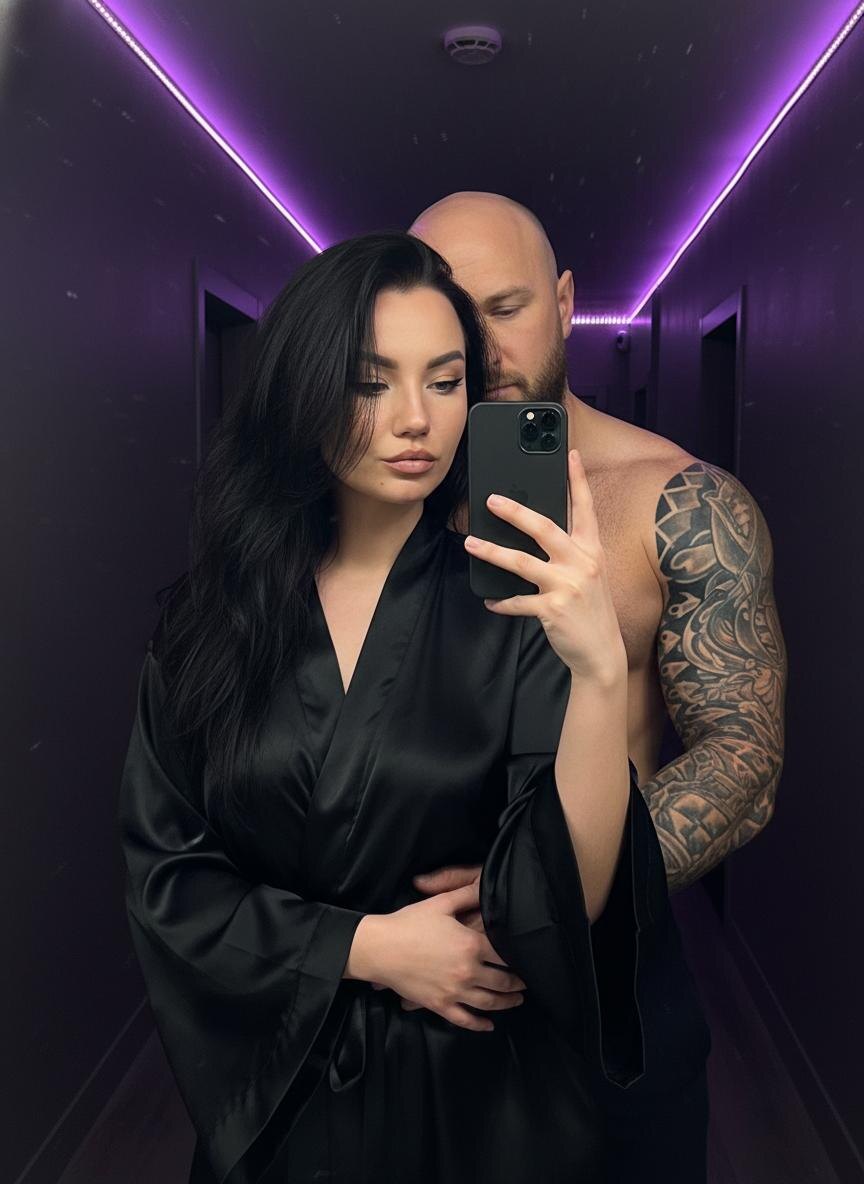 Крошки, признавайтесь: у кого есть тот самый бывший, который думает, что ты до сих пор сохнешь? А теперь представь: постишь в сторис идеальную фотку — ты в объятиях накачанного красавца с тату, в шикарном халате, свет фиолетовый, атмосфера 🔥. Он увидит и поймёт: жизнь удалась без него. Но фотосессию с моделью заказывать не будем. Нейросети справятся лучше. Вот промпт, который выдаст такую картинку — реально неотличимую от съёмки. Копируй и беси! Не меняй черты лица. Экстремально крупный план лица.