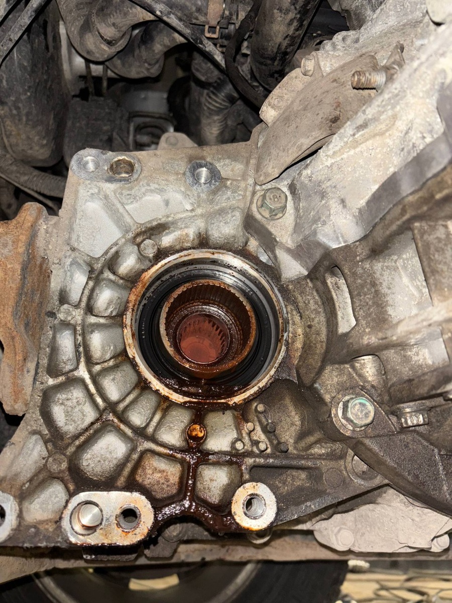 Собрал всё, залил масла, запустил — полный привод завелся! Но радость была недолгой. Потекли сальники правого и левого приводов (полуосей). Видимо, повредились при установке.