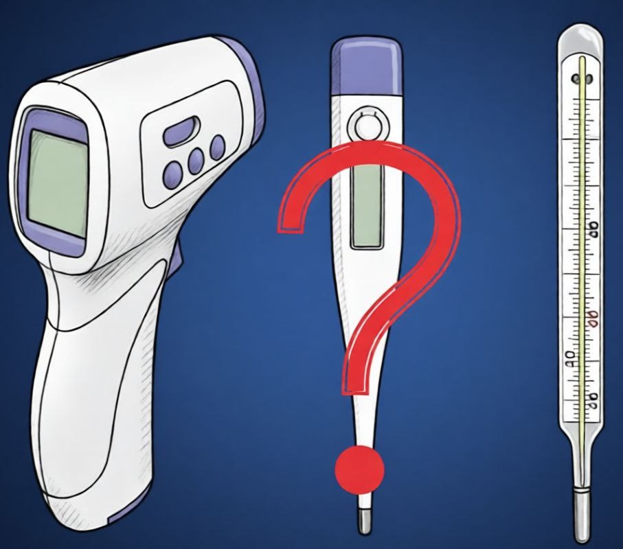 ? Ночь, в доме тишина, и вдруг вы чувствуете, что кто-то из близких горячий на ощупь. Нужно срочно измерить температуру — и у ребенка, и у взрослого. И тут возникает вопрос: можно ли доверять одному прибору для всей семьи или стоит купить разные? Давайте разберемся в технологиях и особенностях, чтобы сделать правильный выбор. 👶 Что важно для ребенка? Для малышей критичны три фактора: безопасность, скорость и комфорт. Бесконтактные инфракрасные термометры (ко лбу) — идеальны: измерение за 2 секунды, не будят спящего ребенка. Электронные ушные модели точны, но требуют правильного расположения в слуховом проходе. Для младенцев до года самый надежный метод — электронный термометр с гибким наконечником для ректального измерения. 👨 Что важно для взрослого? Взрослым важны надежность, точность и простота. Классические электронные термометры под мышку или под язык дают стабильный результат за 1-2 минуты. Универсальные инфракрасные модели (лоб/ухо) удобны для быстрой проверки. Ртутные термо