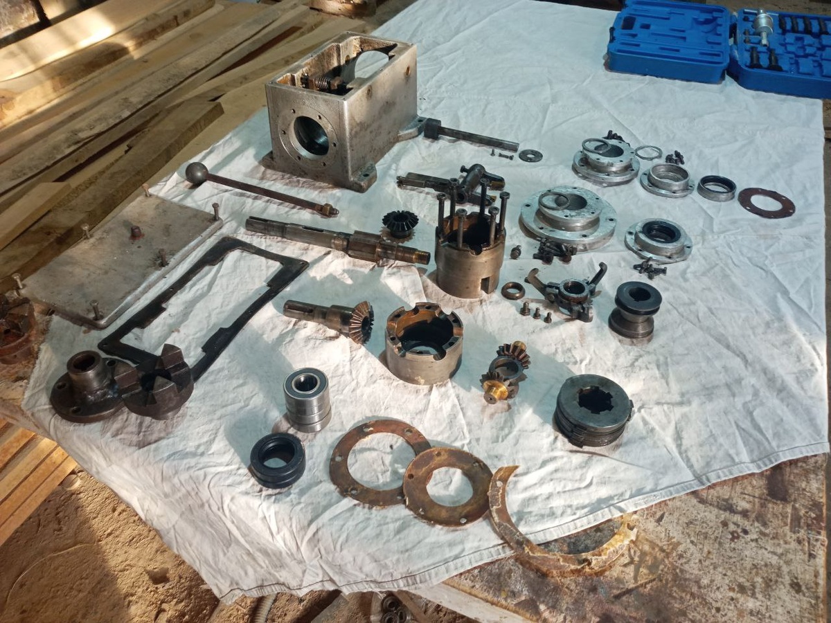 Вообще, не собирался полностью разбирать муфту. Хотел поменять подшипники на валах, сальники поменять и собрать обратно. Однако, после извлечения подшипников из опор стало ясно, с таким износом у них, оставшиеся в муфте 207е не могут быть сильно лучше. Разбирал аккуратно, пользуясь съемниками и фиксируя положения деталей относительно друг друга. Разобрал, переписал крепёж, который пойдет под замену. Промыл картер и счистил все остатки прокладок. Беда, когда технику эксплуатируют идиоты и вандалы. Сделать съемник было проще и быстрее чем так лупить молотком и зубилом. Но, таков был уровень технической культуры в славные времена СССР. Так внутри выглядят ВСЕ станки и оборудование развитого социализма. Это ещё даже не худший случай, деталь по геометрии цела. Остатки более развитой цивилизации победившие Великую войну и освоившие космос. Эксплуат
