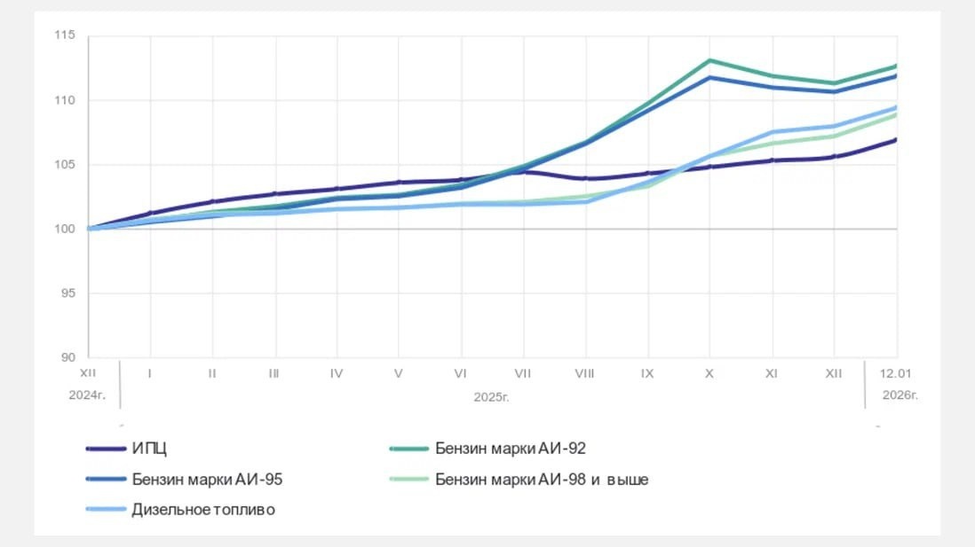 В период с 1 по 12 января рост цен на бензин зафиксирован в 78 регионах страны, наибольший — в Магаданской области и Чукотском автономном округе (на 3,3% и 2,7% соответственно). В Москве и Санкт-Петербурге цены на бензин выросли на 1,6%, а в Дагестане было отмечено снижение на 1,2%. Средние потребительские цены на автомобильный бензин составили 65,39 рубля за литр, увеличившись с 64,65 рубля 22 декабря, при этом стоимость дизельного топлива достигла 76,94 рубля за литр. ____ 📢 Подписывайся 👉 Канал | Аварийка LIVE | ДТП и ЧП России 💬 Общайся 👉 Чат | Обсуждения и новости ДТП