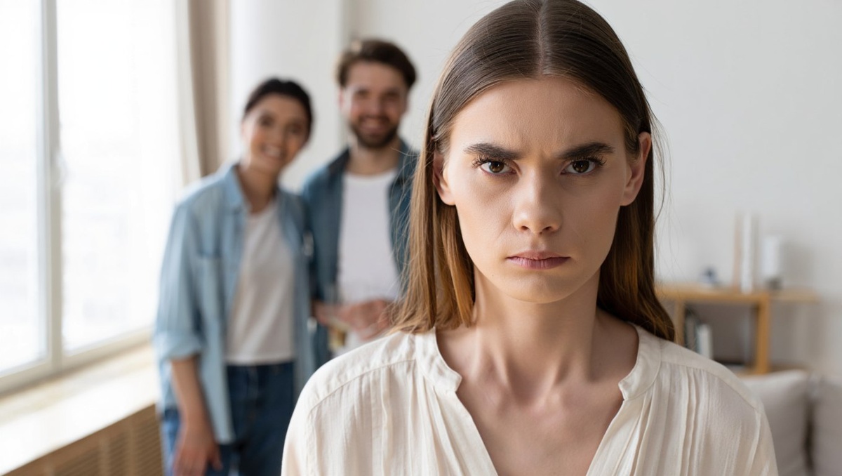 Артём вздрогнул, Лена обернулась. Их лица в одну секунду изменились: у него — от растерянности к раздражению, у неё — от уверенности к испугу.