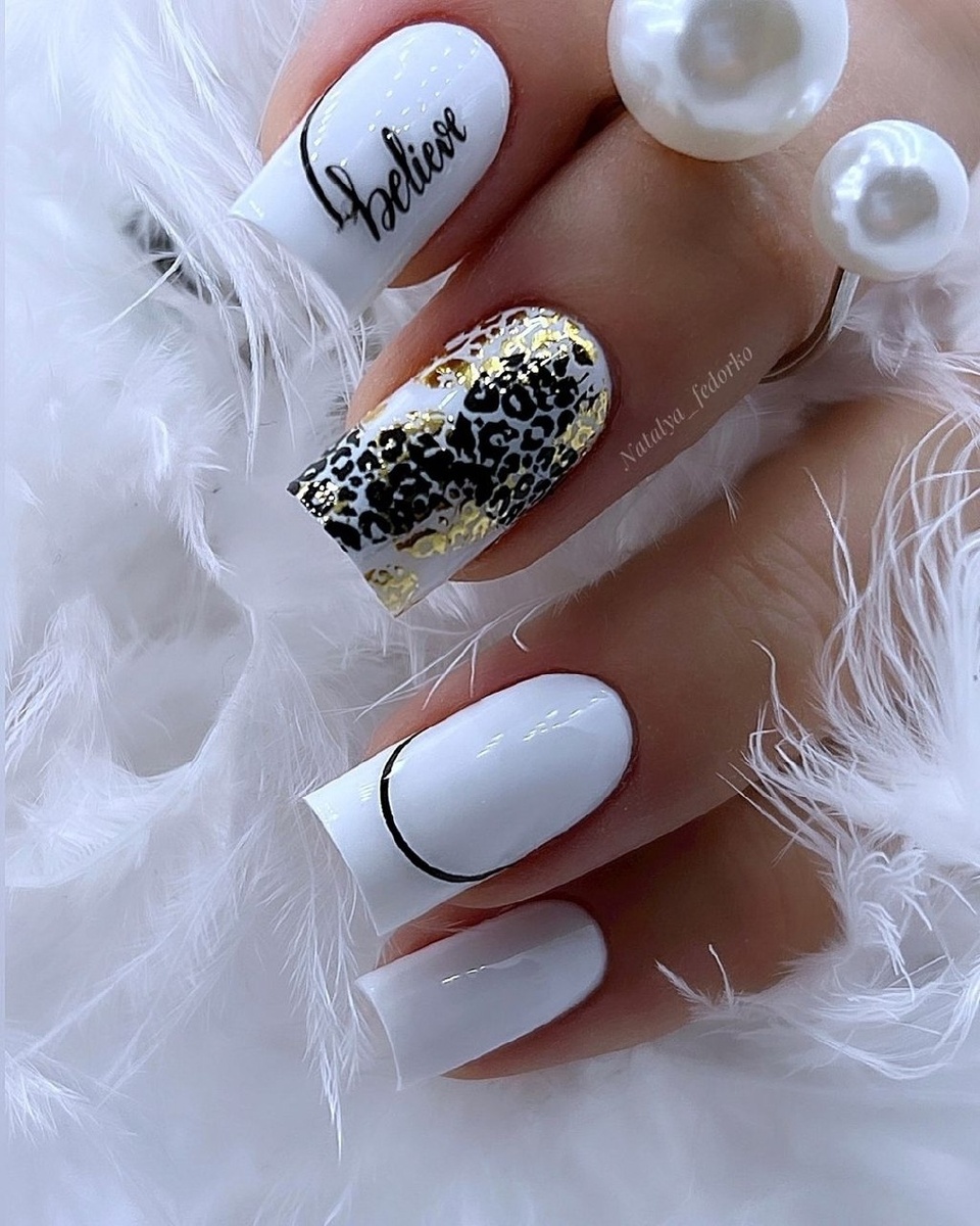 Шикарный и безупречный белый маникюр с леопардовым дизайном