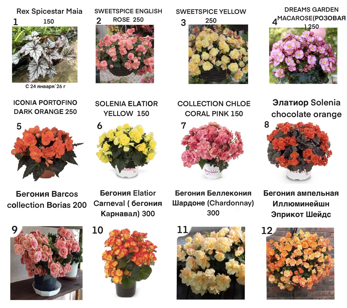 - Описание: Гибридная бегония, цветущая зимой с яркими цветами разных оттенков.