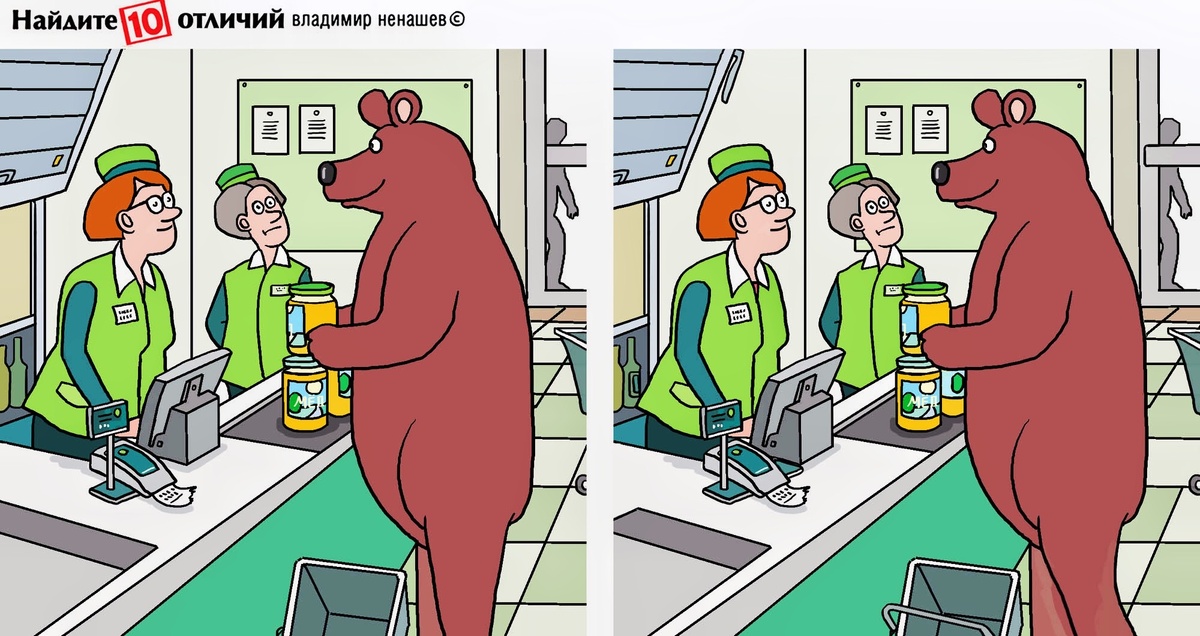 10 отличий в рисунке про покупателя мёда. Тест на внимание. Уверен, что не все найдут. Попробуем сложное?