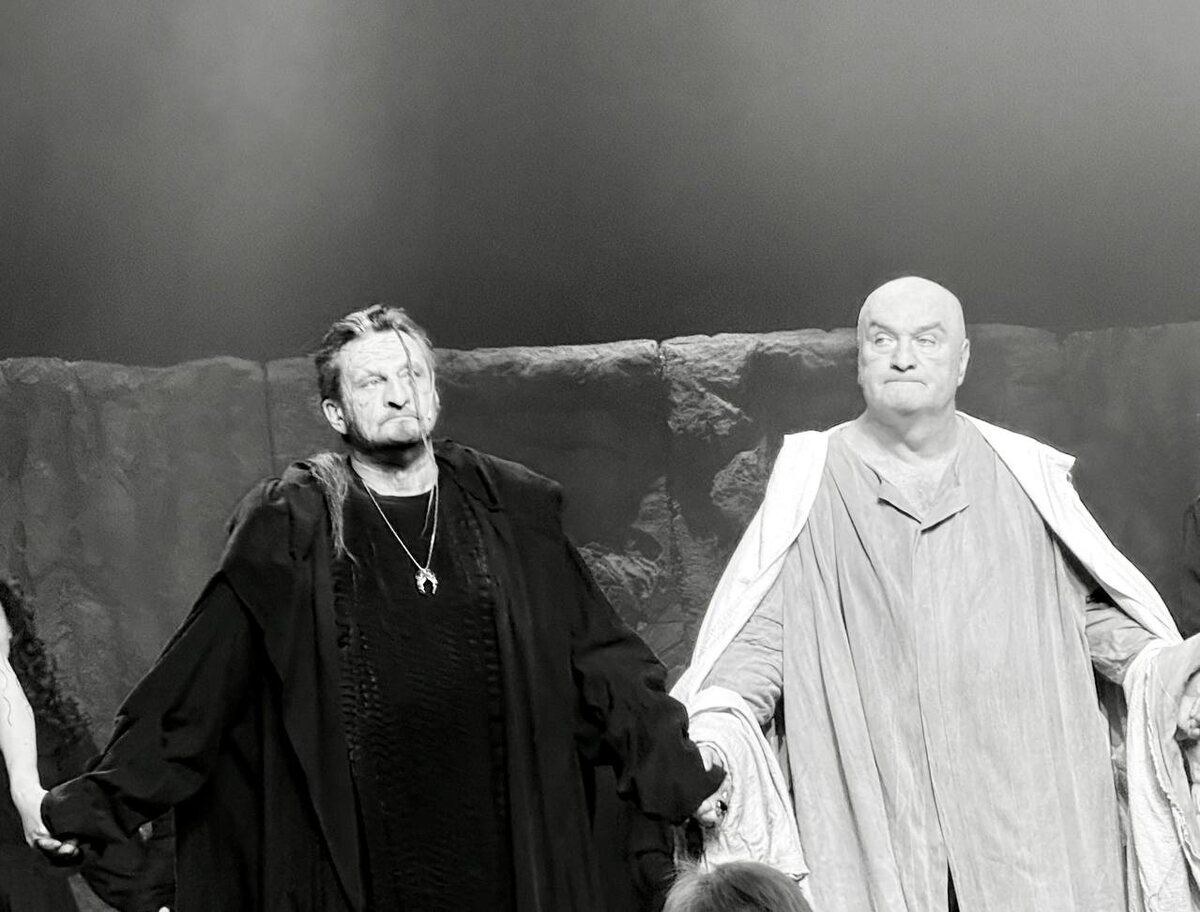 Первая и, пожалуй, самая болезненная — Андрей Кайков в роли первосвященника. Я честно не понял эту работу. Его существование выбивалось из общего ансамбля. Очень заметно, что он путал текст, ошибался, местами будто «лажал». Плюс — ощущение перекривляния. Рядом с ним Балуев существует в глубине, в тяжёлом внутреннем конфликте, а Кайков будто играет в другом жанре — словно водевиль какой-то. Возникает ощущение пустоты и халтуры. При том, что я знаю: он хороший артист, много раз видел его достойные работы. Но то, что я увидел вчера, — впечатлило меня в плохом смысле.