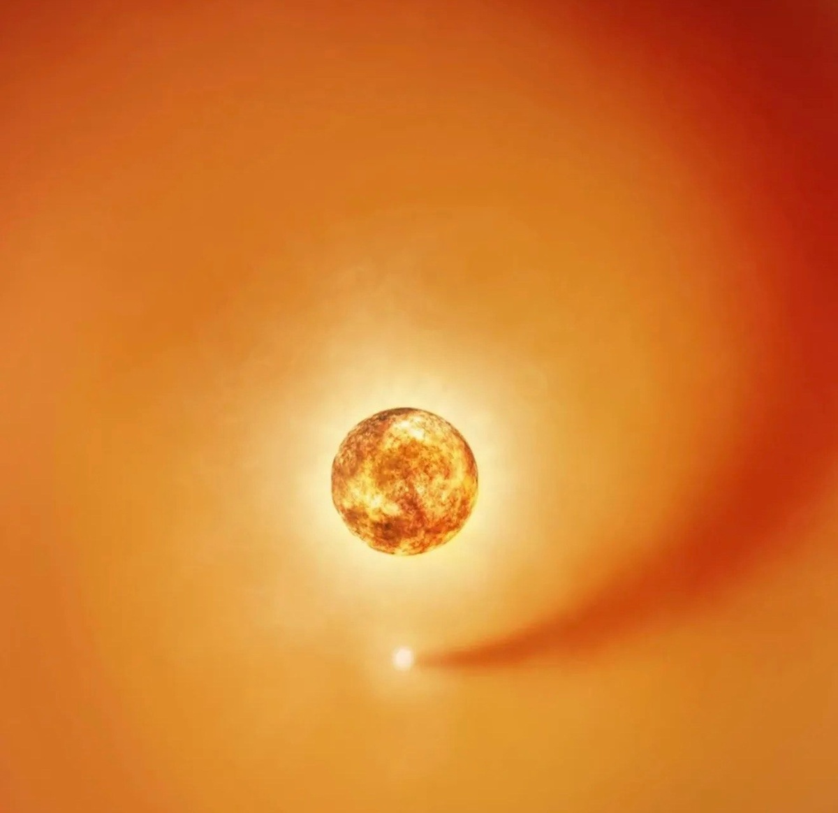 ! Астрономы нашли убедительные доказательства того, что у Бетельгейзе — массивной красной сверхгигантской звезды примерно в 650 световых годах от Земли есть небольшой спутник, который возмущает её атмосферу. Используя почти восемь лет данных космического телескопа «Хаббл» и наземных обсерваторий, исследователи отслеживали тонкие изменения в свете Бетельгейзе и движении газа. Эти изменения указывают на плотный след, или «кильватер», газа, возникающий по мере того, как звезда-компаньон — получившая имя Сиварха движется сквозь огромную внешнюю атмосферу Бетельгейзе, подобно лодке, оставляющей рябь на воде. Этот след появляется каждые шесть лет, когда спутник проходит перед Бетельгейзе, что соответствует давним предсказаниям. Изображение не является фотографией. Картина в представлении художника. Терра инкогнита | Неизвестная земля