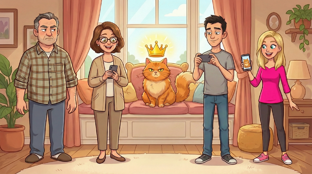 Месяц назад мама создала семейный чат. Назвала его «Барсик и семья». Не «Семья и Барсик». Не «Наши». Именно так. Я сначала думал, что это шутка. Ну, типа ирония такая. Мама же умная женщина, высшее образование, бухгалтер. Оказалось, не шутка. Стартовое сообщение в чате звучало так: «Дети, скиньте фото Барсика, я соскучилась». Это она написала через три часа после того, как вышла из дома. Барсик, к слову, спал на подоконнике. Он вообще всегда спит на подоконнике. Ничего не изменилось. Но фото скинули. И папа тоже. Папа, который раньше говорил: «Зачем нам кот, от него шерсть везде». Теперь он присылает фотки Барсика с подписью «Лежит. Красивый.» Кстати, я раньше думал, что коты независимые существа. Что это они нас выбирают, а не мы их. Так вот, Барсик выбрал всех. И теперь требует дань в виде внимания двадцать четыре часа в сутки. Меня это, честно говоря, уже не удивляет. Привык. На прошлой неделе случилось страшное. Барсик чихнул. Мама написала в чат: «БАРСИК ЧИХНУЛ!!!» Два восклицател