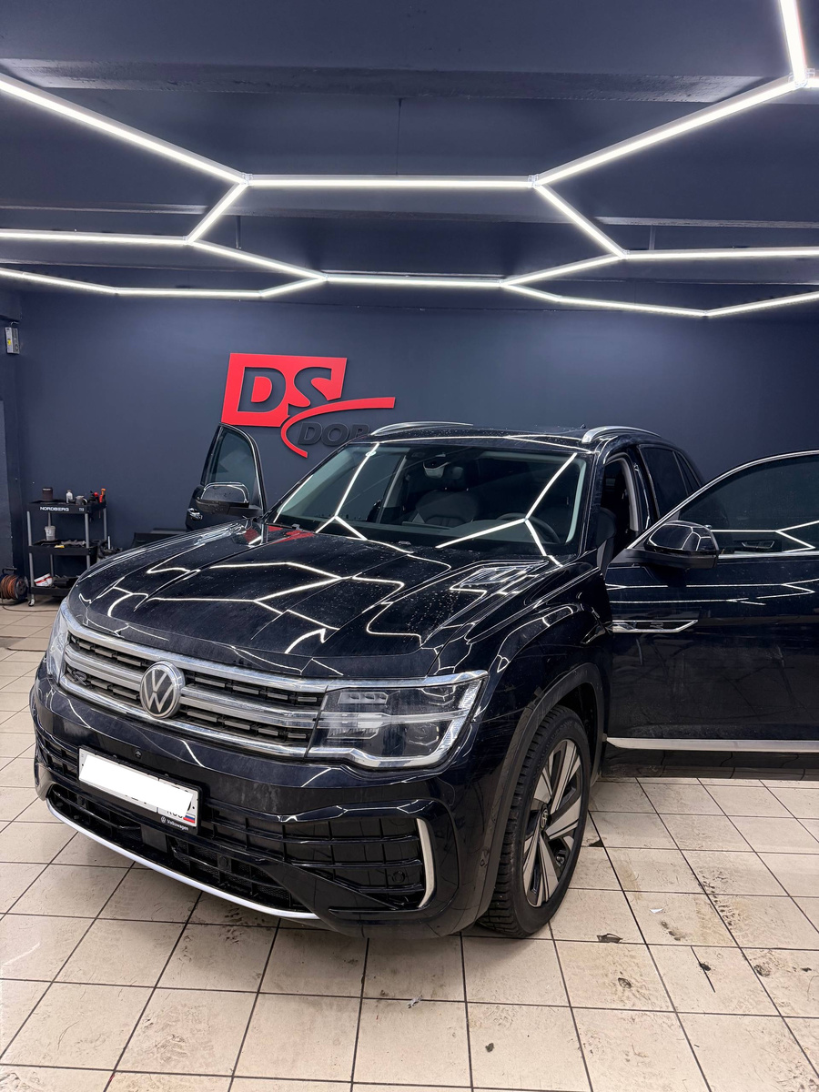 VW Teramont X приехал к нам с комплексным запросом: владелец хотел решить сразу две проблемы. Первая — шум. Гул от колёс, дребезг дверей, камни барабанят по аркам — всё то, с чем живут владельцы больших кроссоверов. Вторая — звук. Штатная система в Teramont играет, но посредственно: плоско, без деталей, без сцены.
