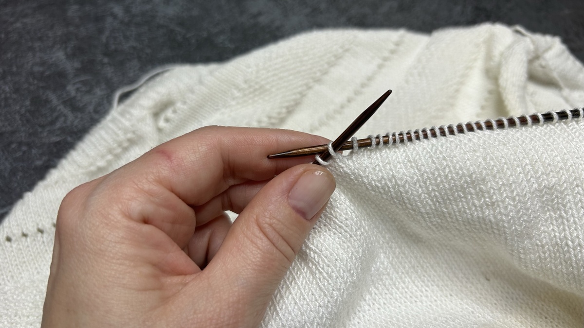Хоть и стараюсь все материалы по папкам разносить, чтобы найти их было легко и просто, но сама сталкиваюсь с тем, что быстро найти нужный материал не всегда получается. Сегодня постараюсь ответить на некоторые вопросы со ссылками на материалы, надеюсь, так вам будет легче. Как вязать изнаночную гладь по кругу, чтобы не было ступеньки? Изнаночная гладь, как и платочная вязка, дают не очень красивую ступеньку при переходе к следующему ряду. Если эта ступенька расположена так, что ее видно, это не очень хорошо. При вязании снудов место смены ряда я всегда располагала на спине, так эта ступенька не была очень заметна. Но если вам все-таки нужно ее спрятать, попробуйте этот способ: Еще один вопрос касался набора петель для обработки по краю манишки. Как набрать петли так, чтобы полотно не сборило и не расходилось волнами? Если обработка проводится после того, как все изделие уже связано, количество петель нужно будет рассчитывать. Набрать "на глаз" получится, но нужно будет приготовиться к