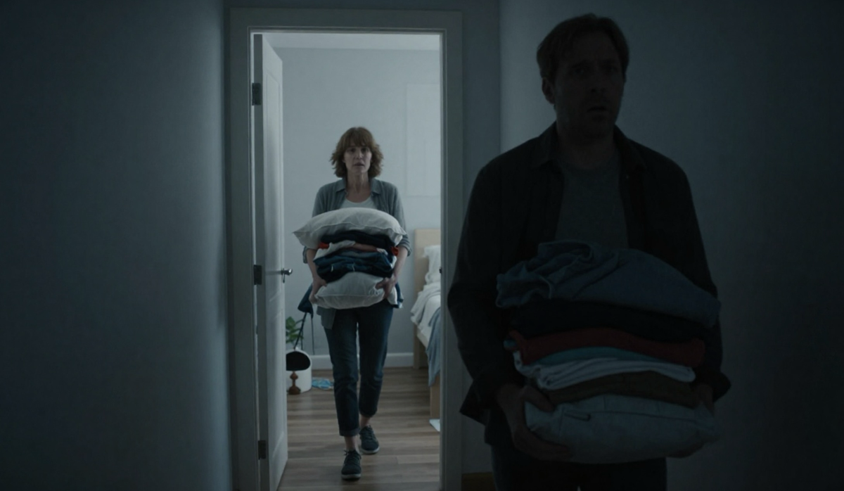 Когда он вышел в коридор, то замер на месте. Марина методично перетаскивала свои вещи из их общей спальни в комнату Антона. Она несла охапку платьев, даже не сняв их с плечиков, и её лицо было абсолютно спокойным, почти торжественным.