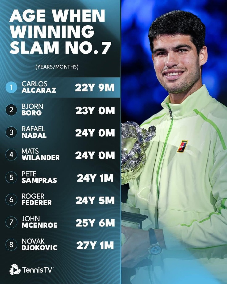 🎾 Возраст, в котором выиграли 7-й шлем: 1) Надаль - 22 года 9 месяцев 2) Борг - 23 года 3) ??? - 23 года 9 месяцев 4) Виландер - 24 года 5) Сампрас - 24 года 1 месяц 6) Федерер - 24 года 5 месяцев 7) Макинрой - 25 лет 6 месяцев 8) Джокович - 27 лет 1 месяц Подпишись на Эйс и точка
