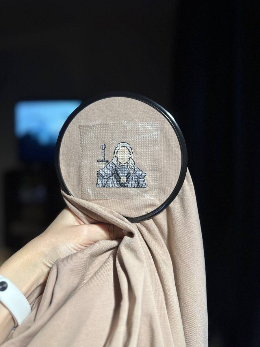 Ведьмак вышит на футболке, презентабельную фотографию сделать не успела, заказчик уже вовсю носит её))