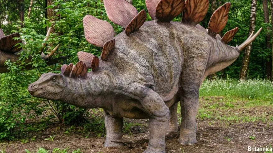 О внешнем виде: О назначении пластин: Завершая описание стегозавра, нельзя не упомянуть его поразительную особенность: в крестцовой области была найдена внушительная полость, представляющая собой разросшийся спинной мозг. Эта структура, удивительно похожая на черепную коробку, превосходила ее по размеру примерно в десять раз! Таким образом, этот динозавр, словно порождение фантазии, обладал двумя "мозговыми центрами": один в голове, а другой – в крестце, отвечавший за координацию движений его массивных задних конечностей и хвоста.