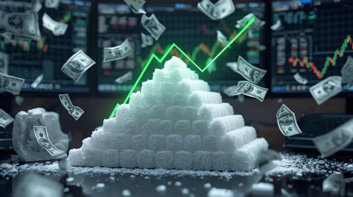 Мировые цены на сахар достигли пика за полторы недели благодаря ослаблению доллара: SBV25 поднялся на 0,95%, SWZ25 на 0,28
