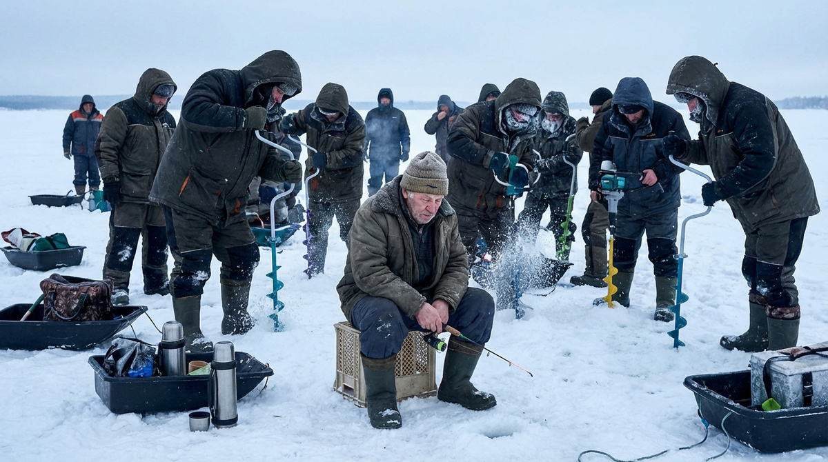 Зимняя рыбалка — это поиск. Ты проходишь километры, сверлишь десятки лунок, ищешь тот самый свал или коряжку, где стоит рыба. И вот, наконец, удача улыбается. Кивок гнется, первая плотва на льду, вторая, третья... Ты стараешься не махать руками, прячешь рыбу в ящик, но опытный глаз «чайки» (так мы называем любителей ловить на чужом горбу) видит всё. Через пять минут вокруг тебя начинает реветь стая ледобуров. Приветствую вас, уважаемые рыбаки, вы на канале "Клевая рыбалка". Ситуация классическая: я нашел стаю леща, тихонько таскал, пока ко мне не подошли двое «коллег» и не просверлились буквально в метре от моего ящика. Грохот, шум, свет в лунку — клев, естественно, выключило мгновенно. Психология толпы Раньше я ругался. Пытался объяснять, что лед большой, ищите свою рыбу. В ответ слышал только: «Тебе жалко что ли? Озеро общее!». Это бесполезно. Ругань только портит нервы, а рыба все равно уходит от шума. Поэтому я разработал тактику «выжженной земли», которая работает безотказно и поз