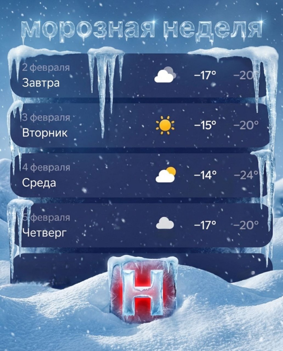 ΠΎΠ»ΠΎΠ΄Π½Π°Ρ ΠΏΠΎΠ³ΠΎΠ΄Π°: Π΄Π½ΡΠΌ Π±ΡΠ΄Π΅Ρ -14...-17 Π³ΡΠ°Π΄ΡΡΠΎΠ², Π° Π½ΠΎΡΡΡ Π½ΠΈΠΆΠ΅ -20. Π ΠΊΠΎΠ½ΡΡ Π½Π΅Π΄Π΅Π»ΠΈ ΠΏΠΎΡΠ΅ΠΏΠ»Π΅Π΅Ρ ΠΈ ΠΏΠΎΠΉΠ΄Π΅Ρ ΡΠ½Π΅Π³. πΊ ΠΠΎΠ΄ΠΏΠΈΡΡΠ²Π°ΠΉΡΠ΅ΡΡ Π½Π° Π½Π°Ρ ΠΊΠ°Π½Π°Π» Π² ΠΠ°ΠΊΡΠ΅