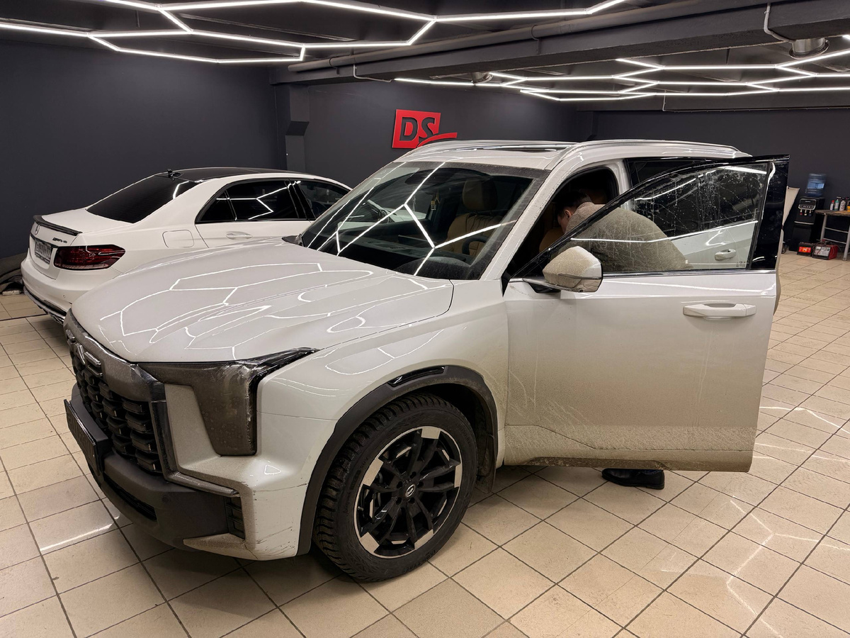 Обработали весь салон: пол от передних сидений до третьего ряда, двери (все шесть, включая багажник), потолок, моторный щит, тоннель, ниши. Не выборочно, а полностью.
