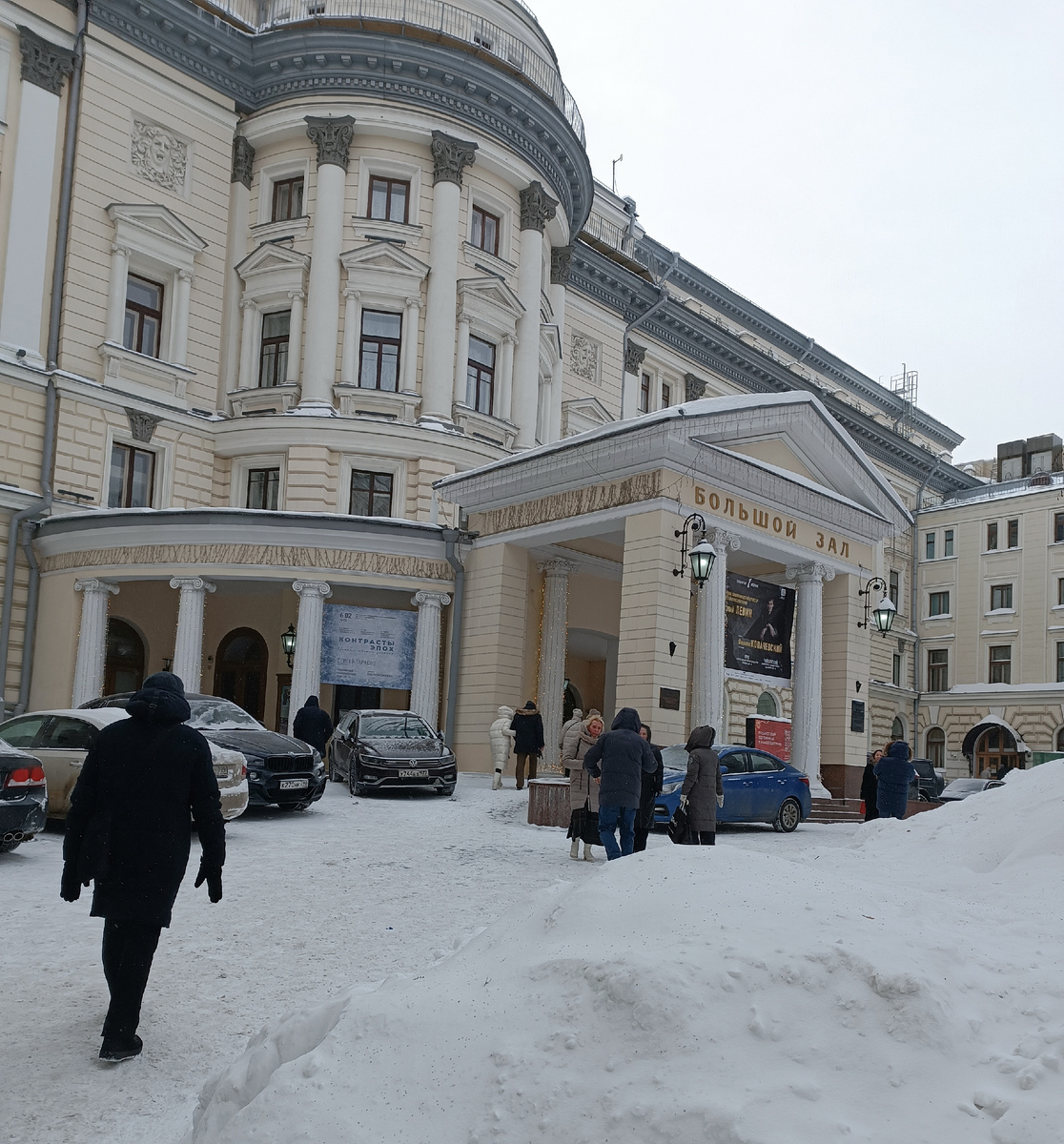 2 февраля 2026 года Здравствуйте, друзья! Вот и последний месяц зимы наступил. Зима в Москве в этом году показывает весь свой непростой характер и уходить никуда, похоже, не собирается. Снегу насыпало столько, что хватит на несколько зим. Даже величественное здание Московской консерватории стоит всё в сугробах. Да ещё и мороз -20. Однако, это не помешало любителям симфонической музыки собраться в главном московском музыкальном зале и послушать прекрасный концерт. А перед концертом как не зайти в буфет с мороза? Мы и зашли. Кофе пришёлся очень кстати. Слушать нам предстояло известные произведения великих композиторов. Чайковский, Римский-Корсаков, Григ, ещё и Глинка. И оркестр под стать композиторам тоже можно назвать великим. Перед нами выступал Симфонический Оркестр Академической капеллы России под управлением Валерия Полянского. Основан в 1957 году. Мы не так давно, в конце прошлого года слушали этот замечательный оркестр в зале "Зарядье" и были рады встретиться с ним ещё раз. Тем б