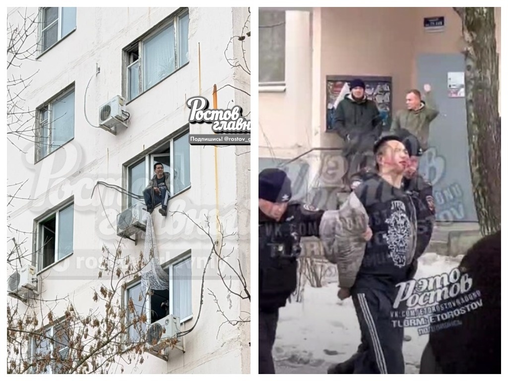 Известно, что мужчина забрался на подоконник шестого этажа и начал вести себя неадекватно, утверждая, что участвовал в боевых действиях. Во время происшествия он себе разбил лицо и не мог самостоятельно вернуться в квартиру. Видео: соцсети Прибывшие на место пожарные с трудом убедили его вернуться в квартиру, после чего передали его сотрудникам полиции. — Правоохранители незамедлительно прибыли на место происшествия и обнаружили мужчину, который не реагировал на требование полицейских прекратить шум и угрожал выпрыгнуть из окна. При содействии сотрудников МЧС полицейские задержали и доставили нарушителя в территориальный отдел внутренних дел для разбирательства, — прокомментировали в ГУ МВД по Ростовской области. Григорий Мелихов Наш сайт в соцсетях: Telegram, Дзен, MAX.