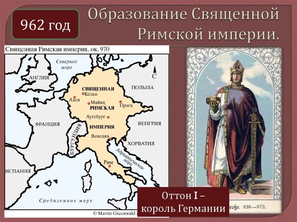 . Папа римский Иоанн XII короновал германского короля Оттона I Великого императором.