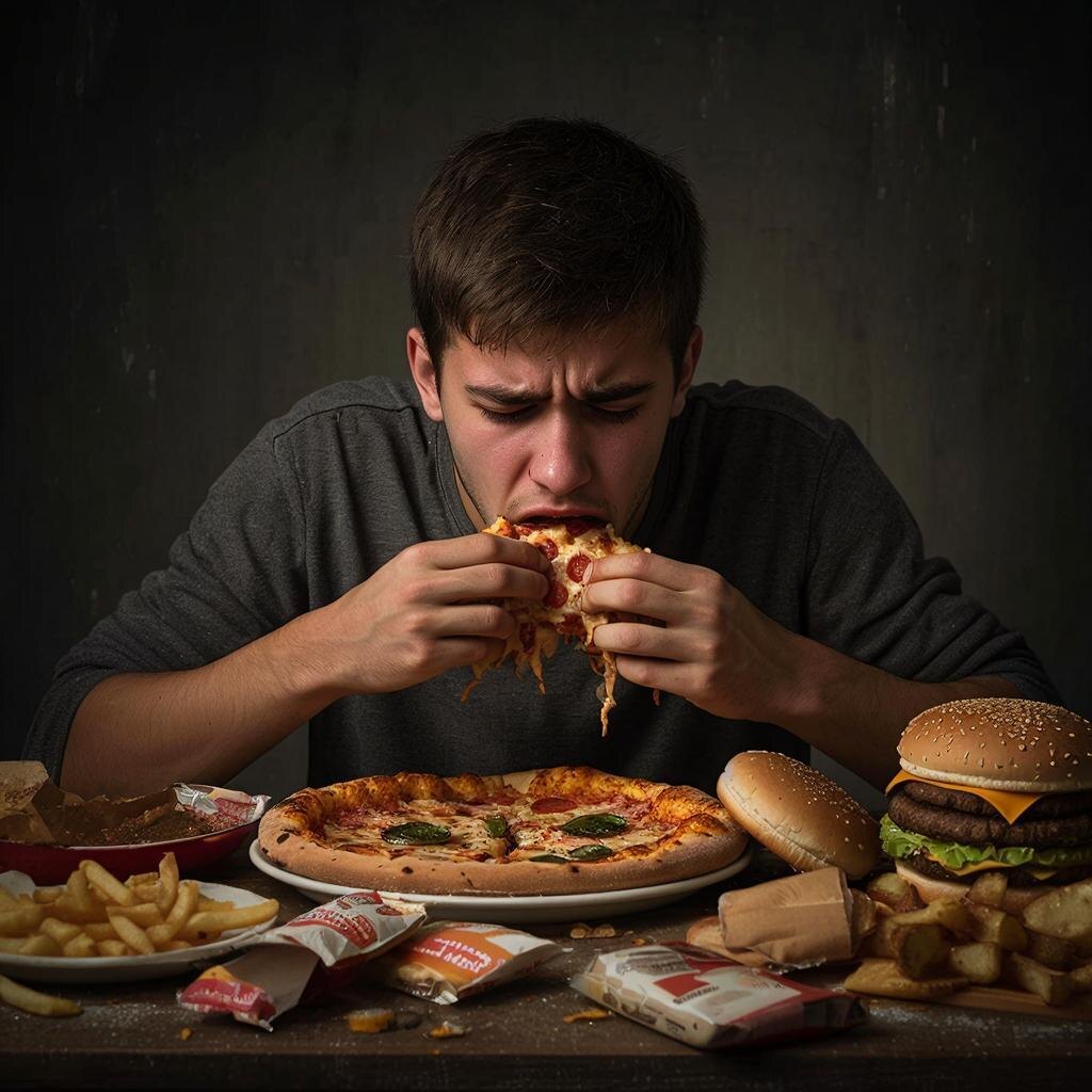 Психологическая зависимость: Человек может испытывать чувство вины и стыда после эпизодов обжорства, что усиливает стресс и тревогу.