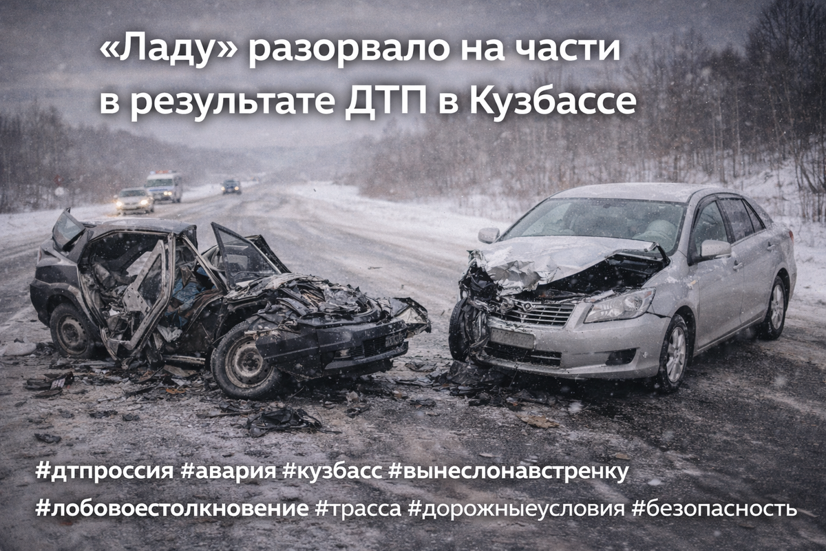 Авария произошла 29 января днём на автодороге Промышленная — Ваганово, недалеко от поворота на село Краснинское. На затяжном повороте автомобиль ВАЗ-2115 под управлением 53-летнего водителя вынесло на встречную полосу, где произошло столкновение с Toyota Corolla Axio. В результате ДТП погибли два человека: 56-летний пассажир «Лады» скончался на месте, 34-летний пассажир иномарки умер по дороге в больницу. Травмы различной степени тяжести получили водитель ВАЗ-2115 и его 55-летний пассажир. Водитель Toyota не пострадал. Причины и обстоятельства аварии устанавливаются, проводится проверка. #дтпроссия #авария #кузбасс #вынеслонавстречку #лобовоестолкновение #трасса #дорожныеусловия #безопасность