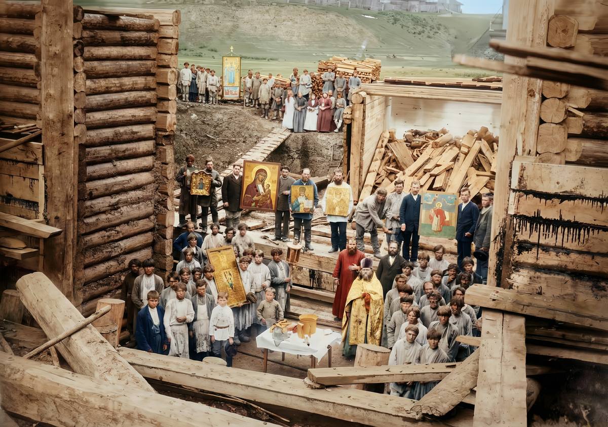Восстановление исторических фото Кудымкара с помощью ИИ: город 100 лет назад в цвете