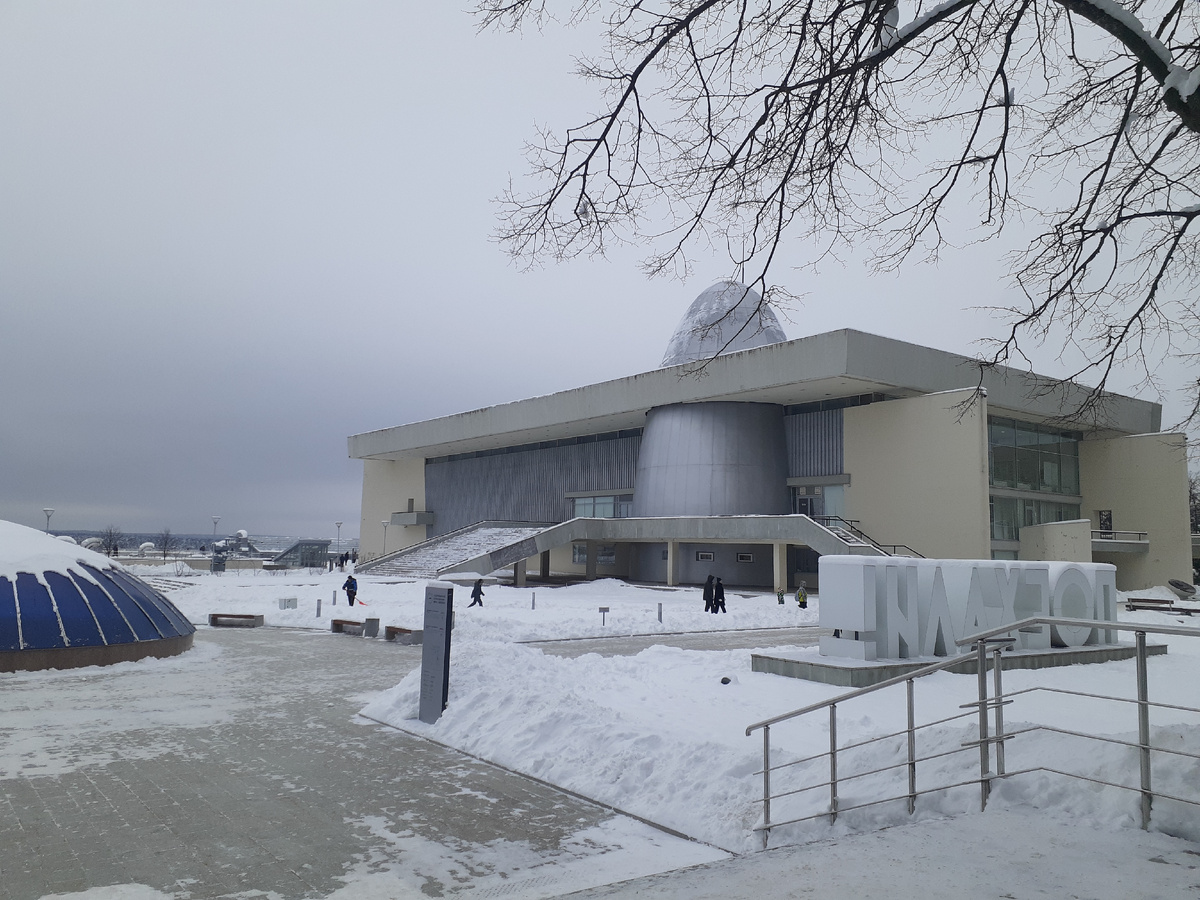 Это новое здание музея. Территорию посмотрим потом. Пошли сначала в 1 (старый) корпус, но оказалось, что посетителей много, гардероб полон. Всех отправляют во 2 (новый) корпус. Пошли и мы. Фото по пути. На Марс полетим? :) Вход во 2 (новый) корпус. Слева копия ракеты-носитель "Восток". Спускаемся. В музее. Скульптурная композиция "Вселенная Циолковского". Константин Эдуардович Циолковский — основоположник современной космонавтики. Вид вниз. Посмотрели на все сначала сверху. Идем правее. Справа макет космической станции "Алмаз". Следующий зал внизу. Вдали кафе. Макет искусственного спутника Земли «Молния-1». Вид "с лица" спутника «Молния-1». Автоматическая станция "Луна-16". Копия космического корабля "Восток". На таком в космос летал