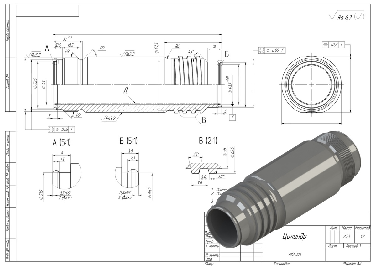 - Нанесение размеров, шероховатости, допусков формы и расположения поверхностей.
