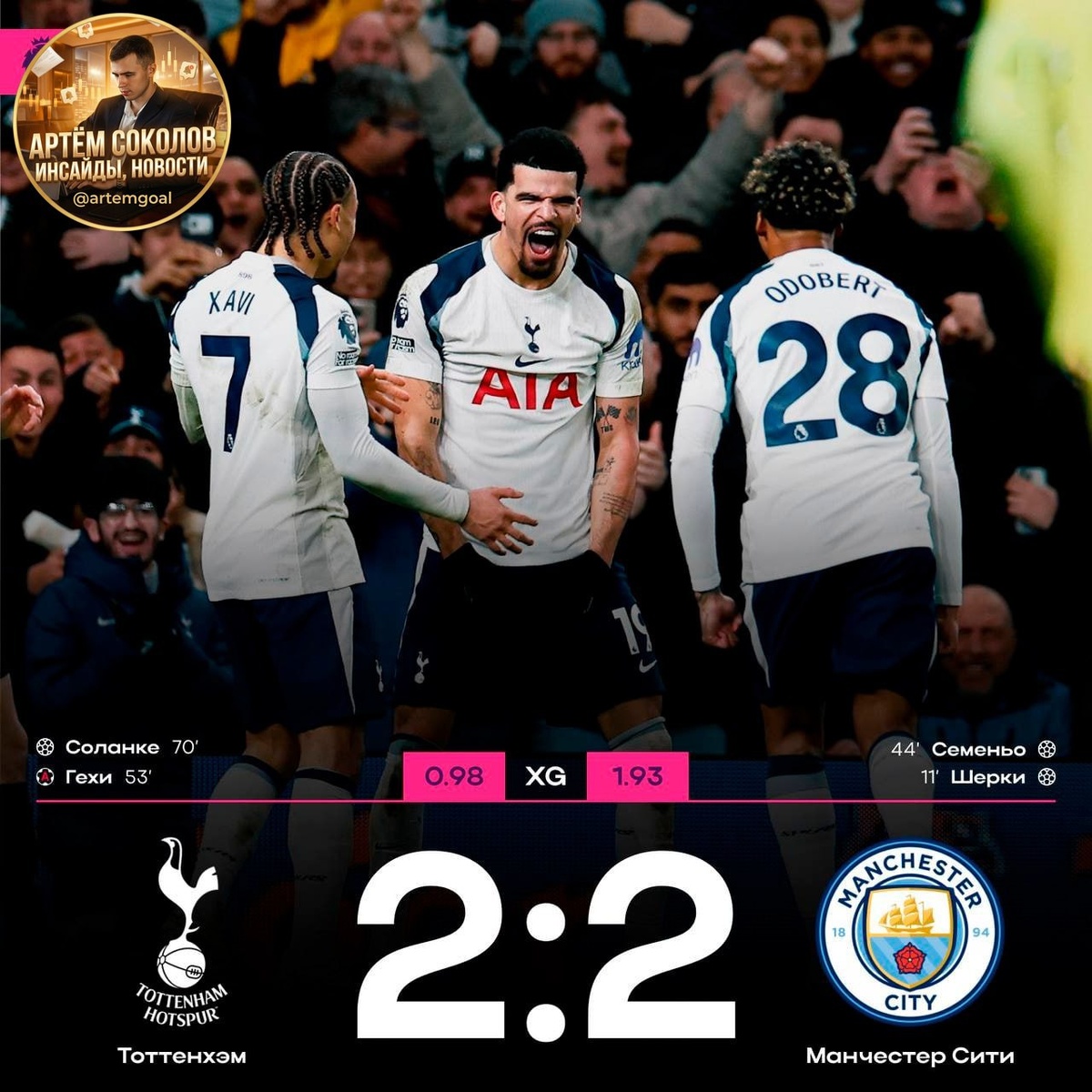 🙅♂️ «Сити» упускает победу ведя в счет 0-2 против «Тоттенхэма
